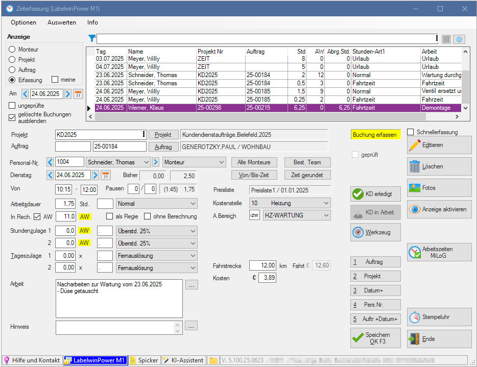 Durch die Nutzung von mobilen Lösungen wie Label Mobile verschiebt sich die Büroarbeit heutzutage von der manuellen Erfassung durch gedruckte Arbeitsberichte hin in Richtung Prüfung. Eine manuelle Erfassung ist jedoch prinzipiell immer noch möglich.